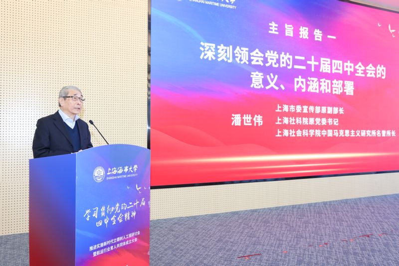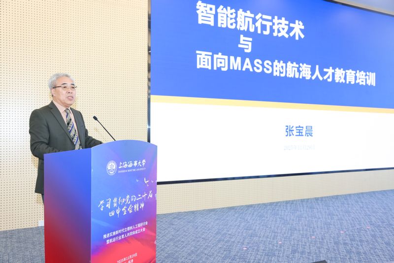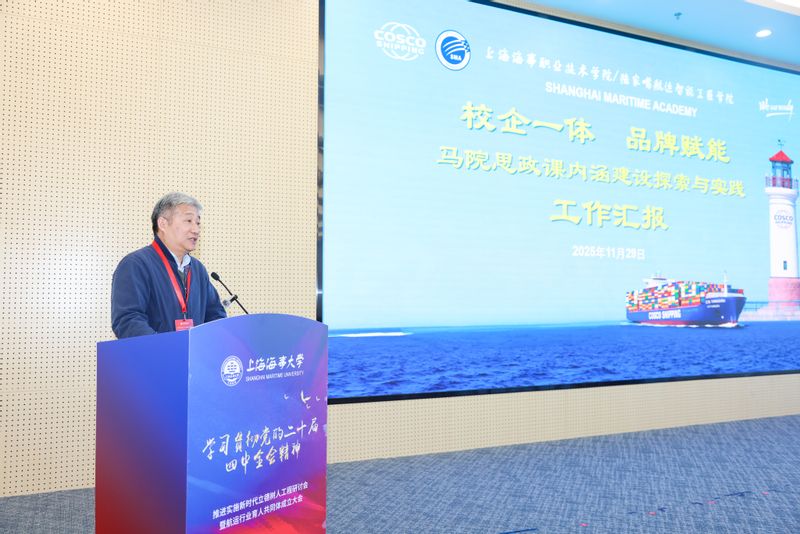 在主旨报告环节,上海市委宣传部原副部长潘世伟以“深刻领会党的二十届四中全会的意义、内涵和部署”为题,系统解读全会的时代背景、理论创新与实践路径,为育人工作提供根本遵循;中国航海学会第十届理事会副理事长张宝晨聚焦“智能航行技术与面向MASS的航海人才教育培训”,从技术前沿视角勾勒航运智能化转型与人才需求新蓝图。