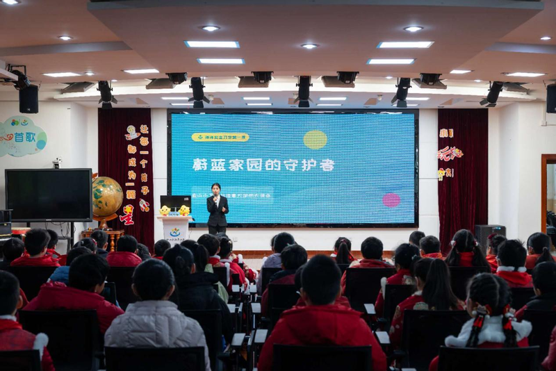 图2 主讲人王莹睿宣讲《蔚蓝家园的守护者》