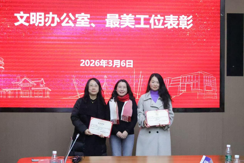 会上还通报了学院2025年度党支部书记述职考核结果,并对获评学院文明办公室、最美工位的教职工予以表彰。
