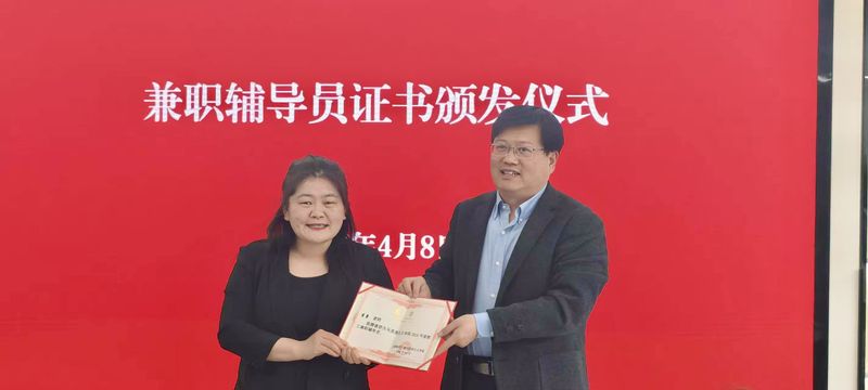 会议最后,张峰院长为李勇老师颁发兼职辅导员聘书。